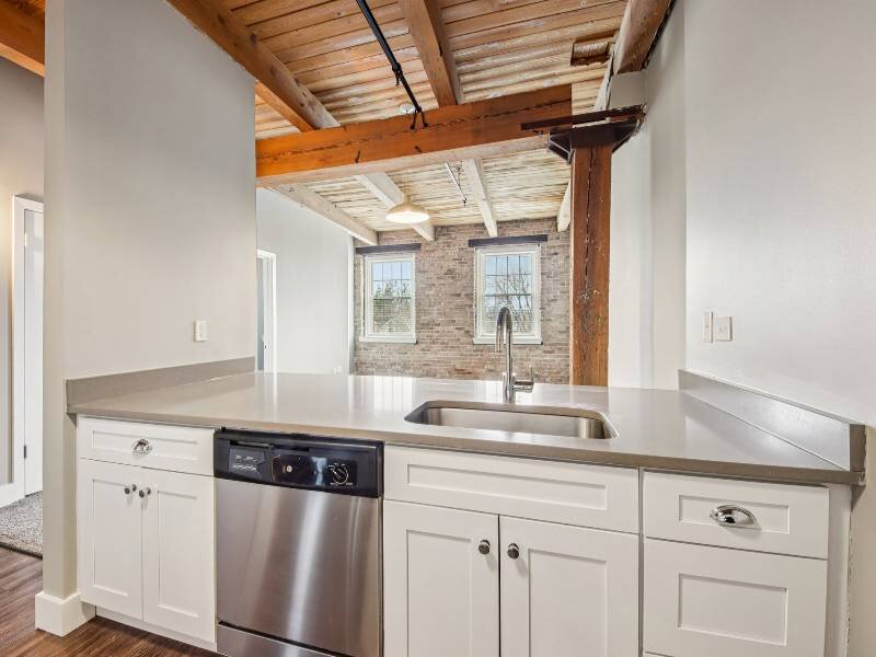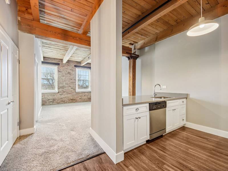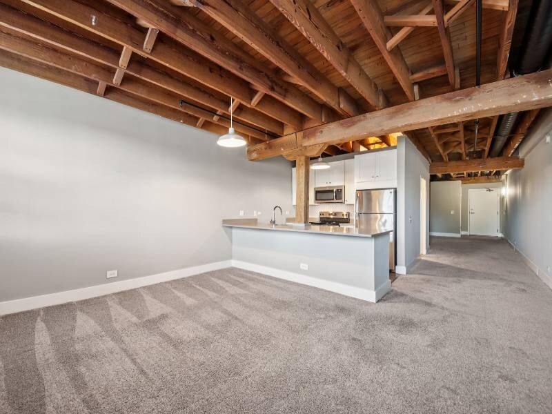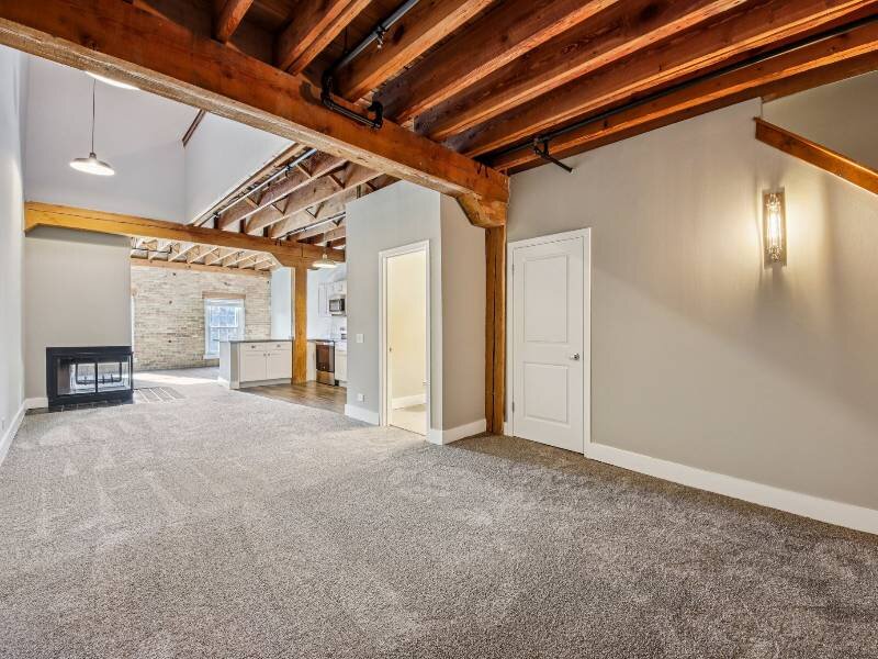 Front Room with Exposed Wood Struts | 5th Avenue Station